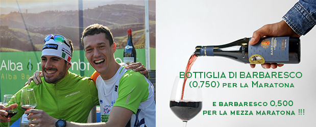 Premiazioni dalle ore 15:30 circa al PalaMarathon: Cerimonia Protocollare di Premiazione dei Vincitori Assoluti e di Categoria e Sorteggio Gran Premio Barbaresco: estrazione a sorte di un Super magnum di Prestigioso Barbaresco tra gli iscritti alla maratona A, e di un Tartufo Bianco d’Alba tra tutti i partecipanti alle gare A+B. I premi vengono assegnati solo se si è presenti al momento del sorteggio.