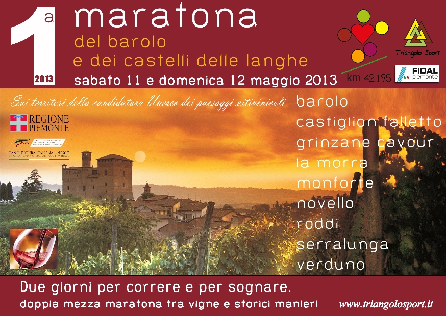 E’ la nuova gara podistica sulla distanza di 42 Km organizzata da Triangolo Sport, ma a differenza dell’Ecomaratona del Barbaresco e del Tartufo Bianco d’Alba che si svolge in autunno, si corre in primavera, e nello spazio di due giornate, con una mezza maratona al sabato e l’altra la domenica, la prima edizione si è svolta nei giorni 11 e 12 maggio 2013. E’ possibile iscriversi anche a una sola gara.